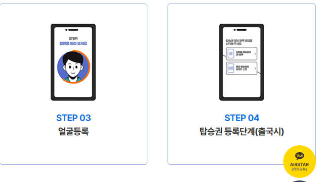 여권, 안면정보, 탑승권 등을 사전 등록한 후 공항에서 출국장, 탑승게이트 등 출국 프로세스를 얼굴 인증만으로 통과할 수 있습니다.